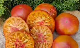 Полностью спелый плод представляет собой яркий желто-красный гибрид этих оттенков, причем рисунок на каждом томате уникален. Такая пестрая окраска не только красива, но и служит надежным индикатором оптимальной стадии зрелости для сбора.