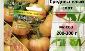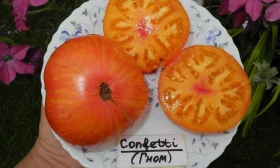 Томат «Гном Конфетти» — яркий и продуктивный сорт для любого огорода. Его главная «фишка» — необычные плоды: крупные, желто-оранжевые с розовыми полосами и отличным вкусом. Этот низкорослый, но урожайный томат одинаково хорошо растет и в грунте, и в горшке, открывая возможности для любого садовода.
