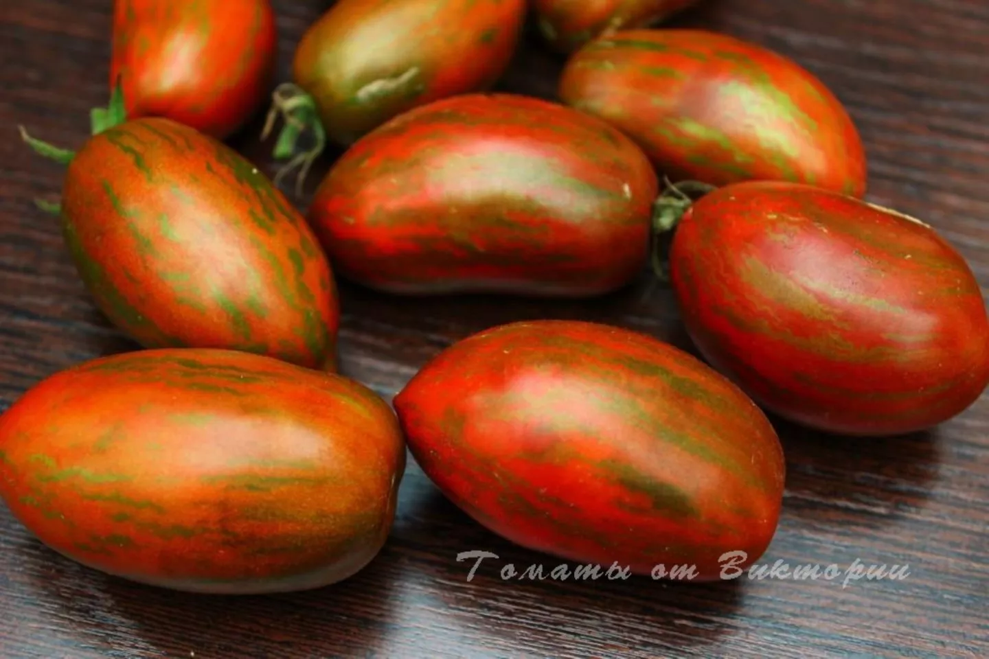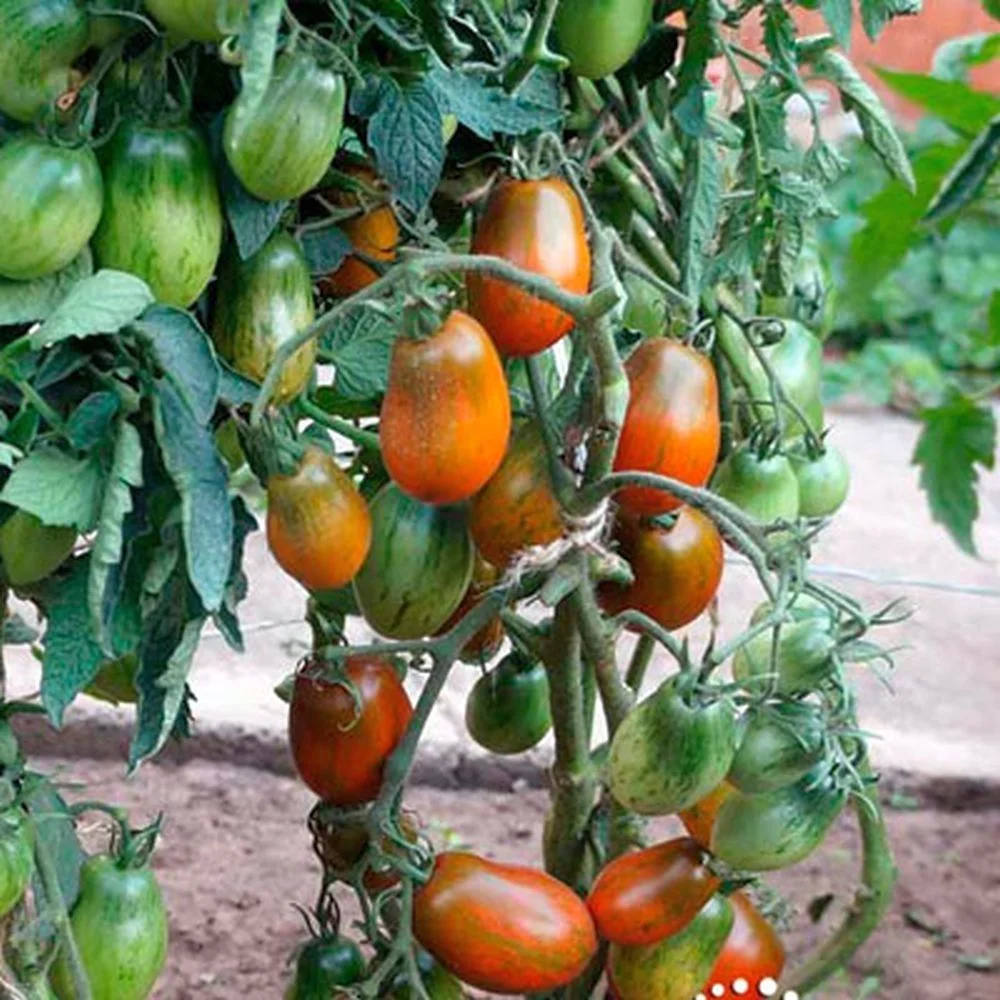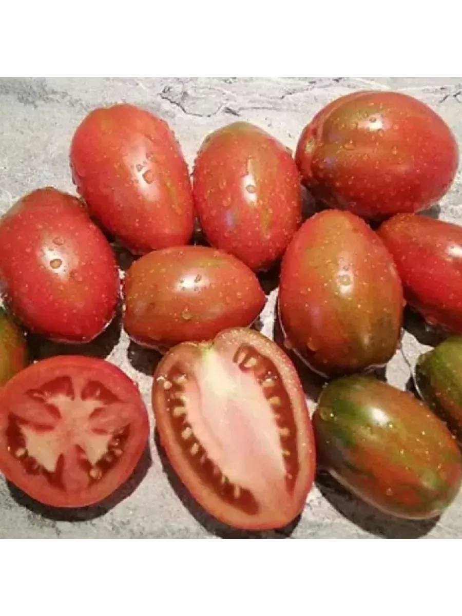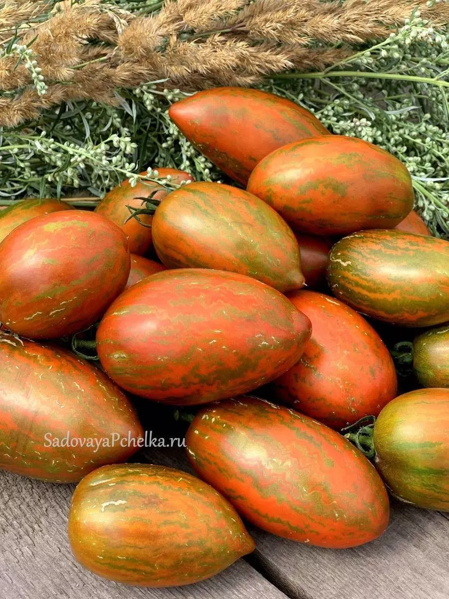Окрас зрелого томата уникален и служит надежным индикатором спелости. Он представляет собой глубокий кирпично-коричневый фон, покрытый контрастными бронзовыми штрихами и полосками. Такой необычный цвет обусловлен высоким содержанием антоцианов — природных пигментов, являющихся сильными антиоксидантами.