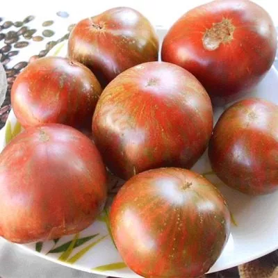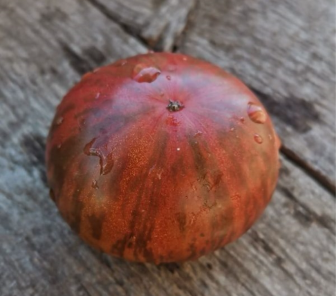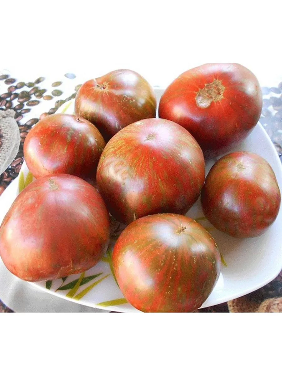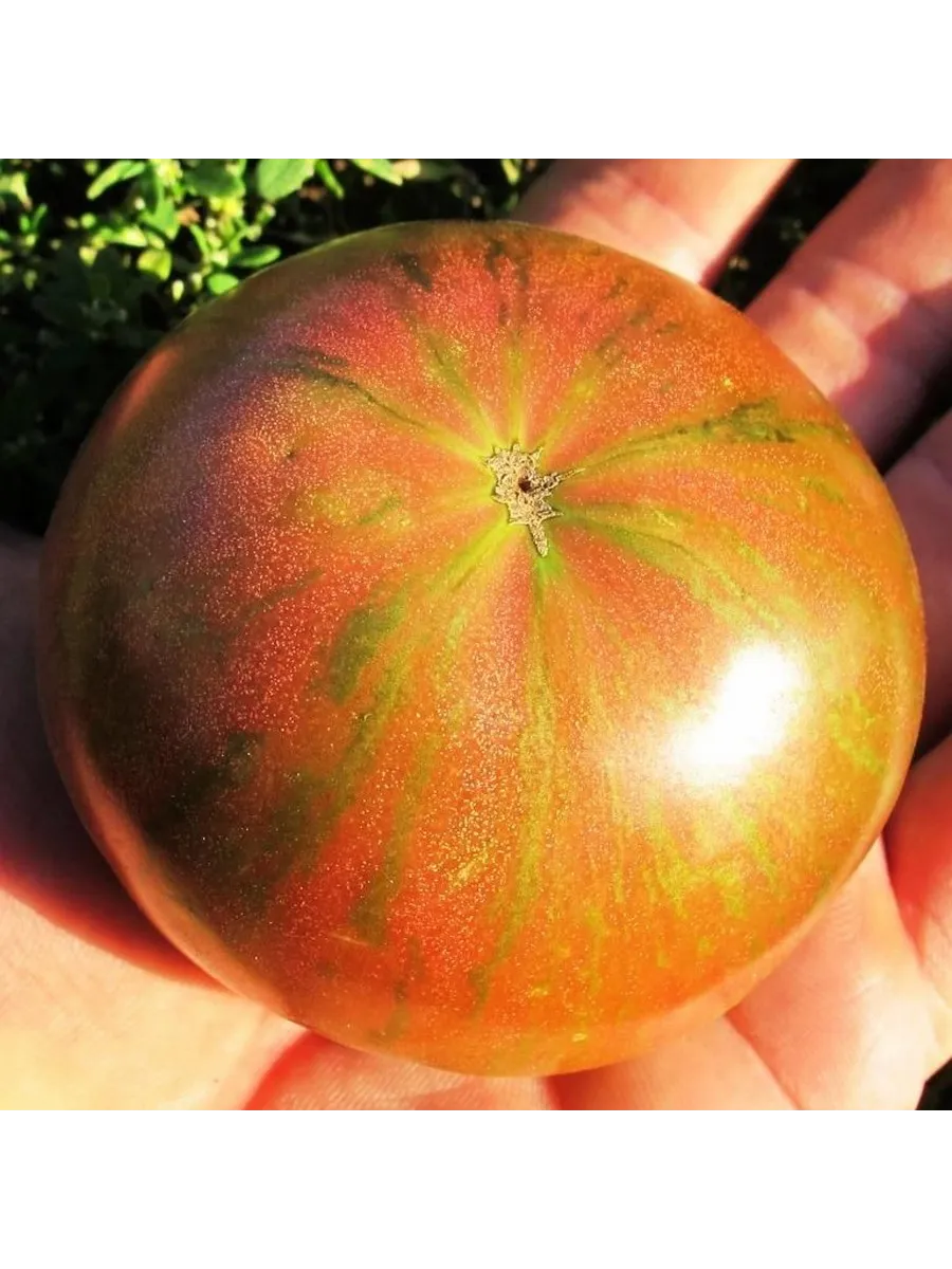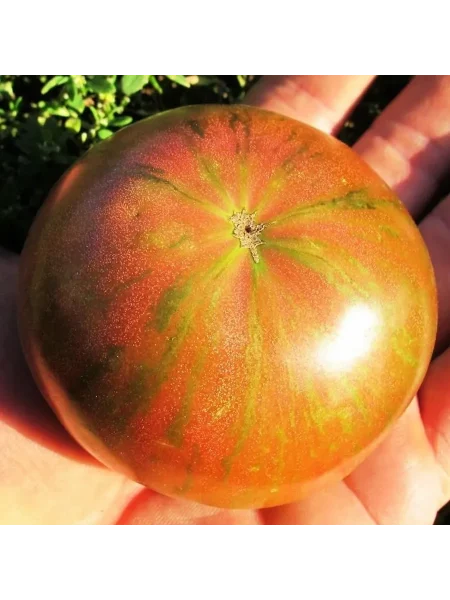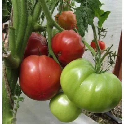 Плоды имеют характерную плоскоокруглую, часто приплюснутую сверху и снизу форму. У основания, у плодоножки, присутствует выраженная ребристость, которая придает томату классический «бифштексный» вид. Такая форма типична для многих мясистых сортов.