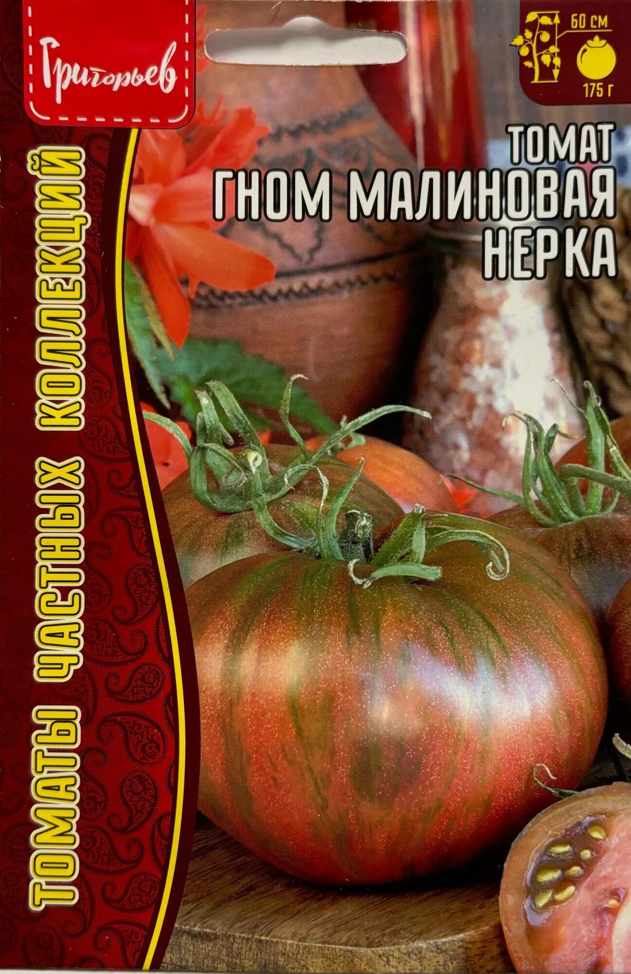 Томат Гном Малиновая нерка — один из успешных результатов этой многолетней работы. Его генетика включает в себя наследие как карликовых предков, обеспечивающих полудетерминантный тип роста и среднерослость, так и лучших крупноплодных сортов, подаривших ему массивные, плоскоокруглые плоды массой 150-250 граммов. Особенность его окраски — темный розово-малиновый фон с оливково-бронзовыми штрихами — также является прямым следствием целенаправленной селекции на уникальный фенотип в рамках проекта.