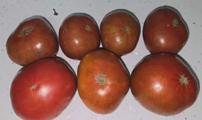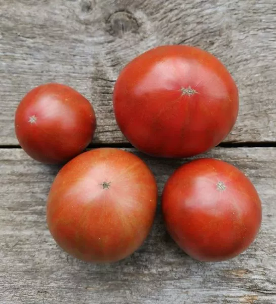 Главная визуальная особенность этих томатов — их глубокий, насыщенный красно-коричневый цвет в полной спелости. Такой оттенок, часто описываемый как шоколадный или кирпичный, формируется благодаря сочетанию красного ликопина и антоцианов – растительных пигментов с высокой антиоксидантной активностью. Интенсивность окраски напрямую зависит от количества солнечного света: плоды, созревшие под открытым небом, будут темнее и ярче, чем те, что дозревали в тени листвы или в теплице.