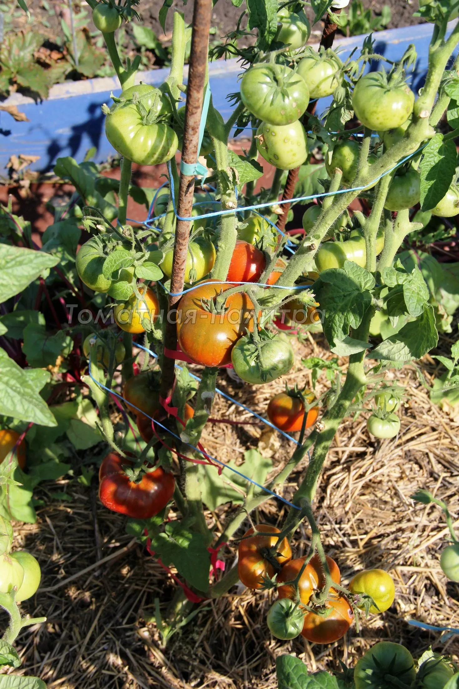 Подвязка обязательна, несмотря на невысокий рост. Стебли, нагруженные кистями с плодами массой 120-250 граммов, будут ложиться на землю. Каждый стебель лучше подвязать к отдельному колышку или аккуратно зафиксировать на шпалере.