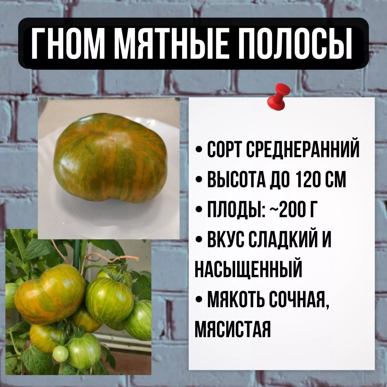 Гном Мятные полосы является стабильным сортом, а не гибридом. Это ключевая особенность, позволяющая садоводам самостоятельно заготавливать семена из своих плодов. При правильном отборе (с самых здоровых и типичных кустов) все сортовые признаки, включая уникальную окраску и вкус, будут полностью передаваться потомству из года в год.