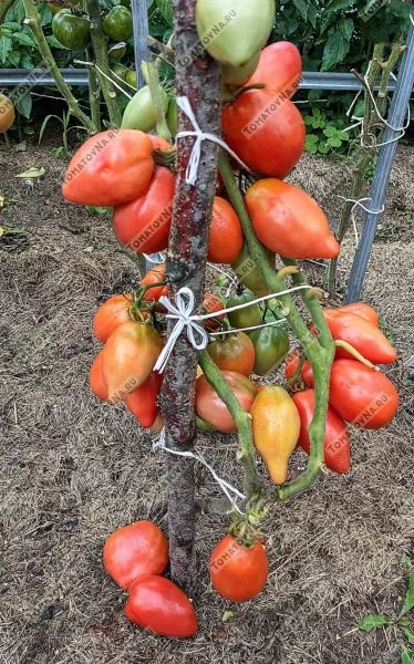 | Масса плода | 100-150 г (отдельные до 300 г) | Крупноплодность, нетипичная для низкорослых форм. Плоды не мельчают к верхушке при правильном формировании (нормировании количества завязей). |