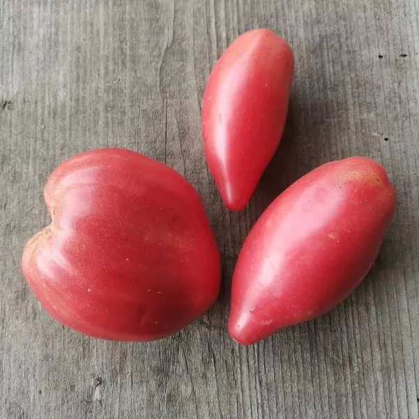 | Форма плода | Удлиненно-сердцевидная, с вытянутым кончиком | Очень узнаваемая, красивая форма. Удобна для нарезки колецами и переработки на пасту или сок, так как имеет небольшое количество семенных камер и плотную мякоть. |