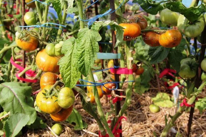 Из-за большого размера и веса плодов (150-250 г) кисти нуждаются в обязательной подвязке. Подвязывать нужно не только основной стебель к надежной опоре, но и каждую тяжелую кисть отдельно, используя мягкие ленты или клипсы. Иначе цветоносы могут отломиться под нагрузкой спеющих томатов.
