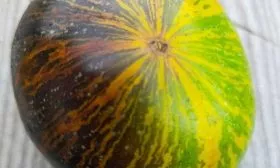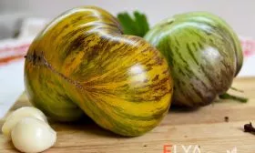 Внешний вид плодов — его вторая «визитная карточка». Окраска описывается как сложная: на основной оливковой кожице проявляются яркие оранжевые и зеленые штрихи и полосы. Такой пёстрый, «акварельный» эффект делает урожай не только пищевым, но и декоративным. Важно отметить, что эта окраска является сортовым признаком, а не показателем незрелости.