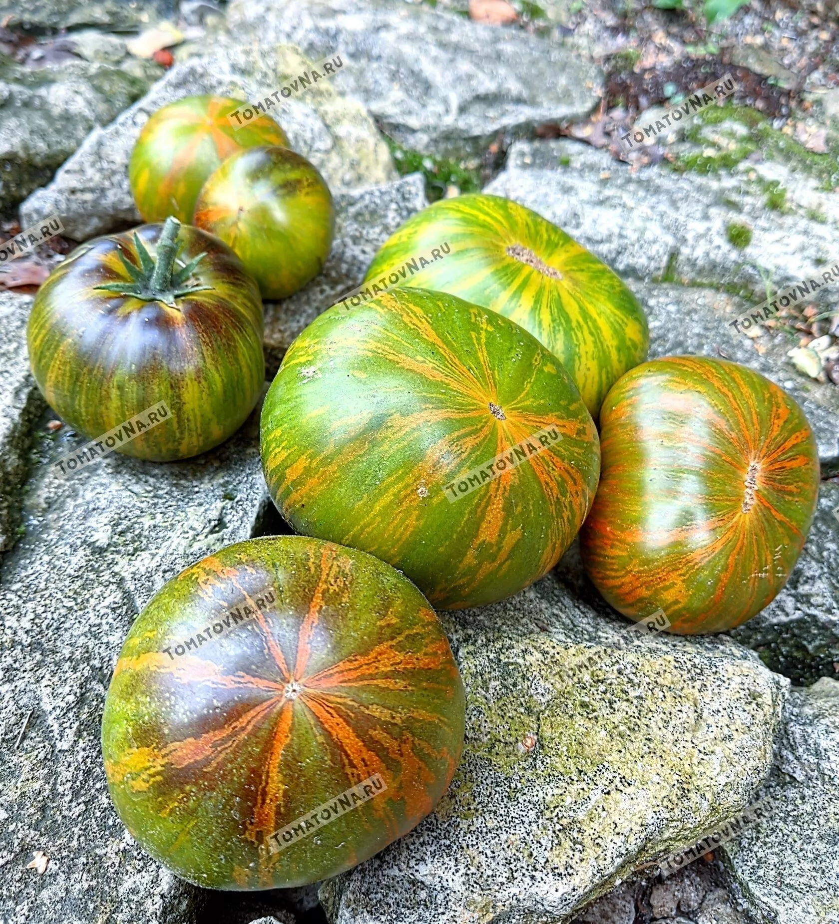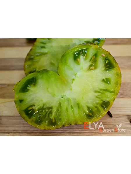Созревание начинается с изменения цвета с классического зеленого на теплый оливковый или желто-зеленый базовый фон. Именно на этом фоне постепенно, как на холсте, проявляются хаотичные ярко-оранжевые и изумрудно-зеленые штрихи, полосы и мраморные разводы. Этот рисунок никогда не повторяется от плода к плоду, что добавляет сорту особой ценности.