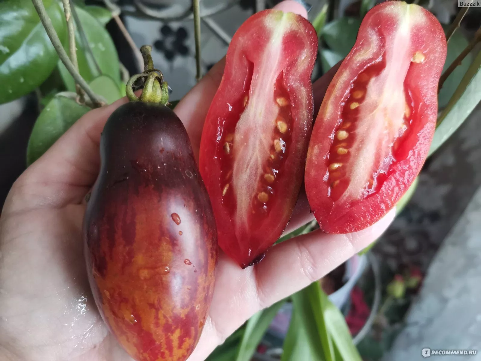 Окраска созревающих плодов динамична. В фазе технической спелости у основания появляется темное пятно. По мере созревания основная часть томата наливается насыщенным розово-малиновым цветом, а область вокруг плодоножки, так называемые плечики, сохраняет густо-фиолетовый, почти черный оттенок. Этот контраст – визитная карточка сорта.
