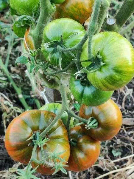 В стадии технической спелости плоды имеют зеленую окраску с темно-зеленым пятном у вершины. Постепенное созревание и проявление уникального рисунка делает куст не только источником урожая, но и декоративным элементом в теплице.