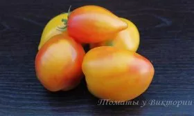 | Цвет зрелого плода | Жёлтый с красным | Основной цвет кожицы и мякоти – солнечно-желтый. На вершине и боках проявляется яркий красный или розовый румянец. Такая двухцветная, «персиковая» окраска является визитной карточкой сорта. |