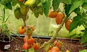 - Подвязка. Подвязку стеблей к надежной опоре (кольям высотой не менее 1 метра) проводят сразу после высадки. По мере роста и налива плодов обязательно подвязывают и тяжелые кисти, чтобы они не отламывались под собственной тяжестью. Стебель у сорта крепкий, но нагрузка урожаем серьезная.