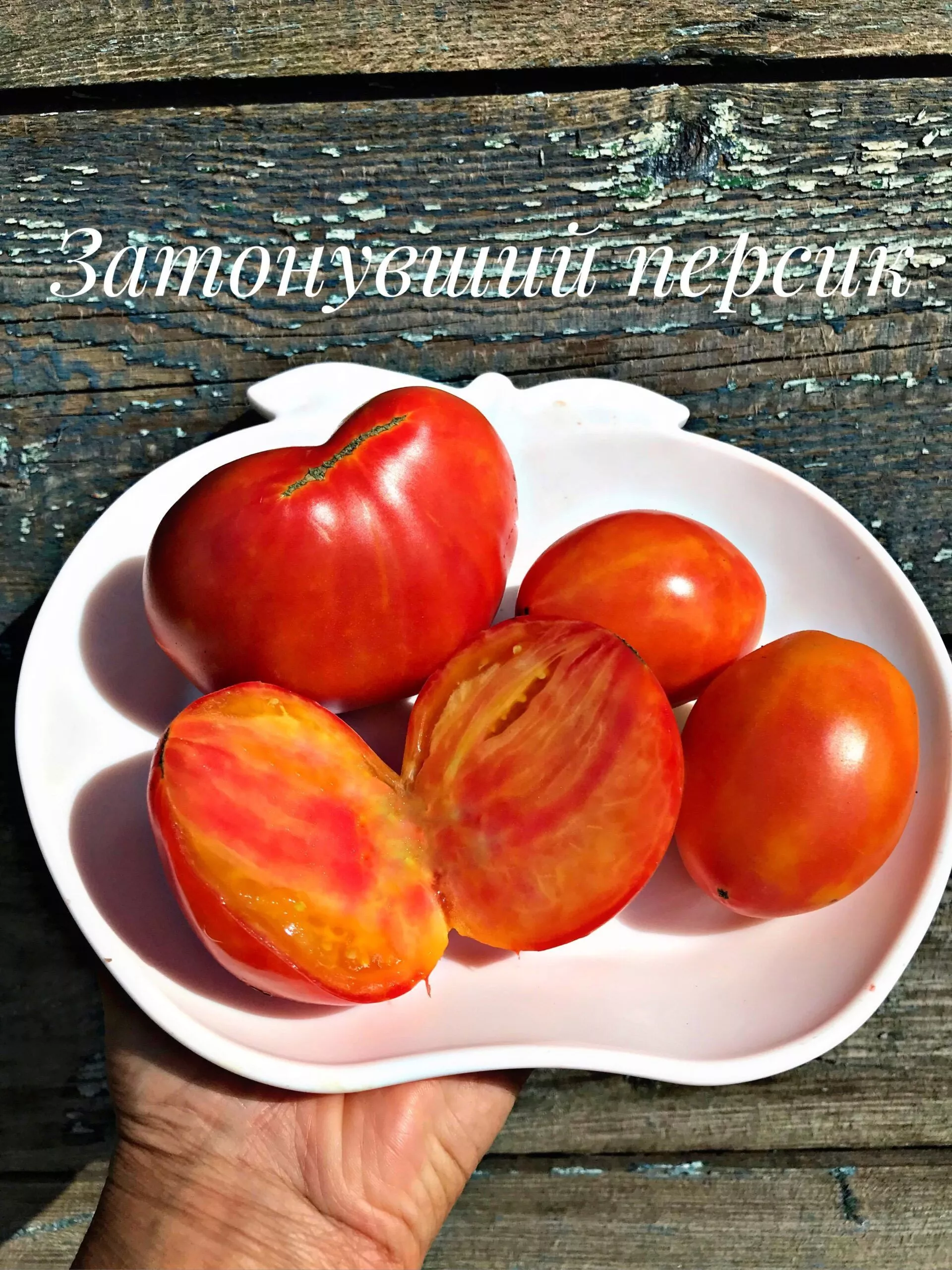 Этот томат, известный под двумя названиями – Гном Затонувший Персик и Солнечный Персик – является результатом целенаправленной селекции в рамках международного Dwarf Tomato Project («Проект Гном»). Главной целью проекта было объединить в одном растении компактный, удобный для выращивания куст и выдающиеся вкусовые качества крупных плодов, характерных для высокорослых сортов.