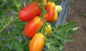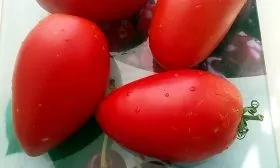 Среднеранний срок созревания позволяет рассчитывать на урожай в середине сезона. Обратнояйцевидная форма плода — это вытянутый «сливовидный» томат с более широкой вершинкой, что характерно для многих сортов салатного назначения.
