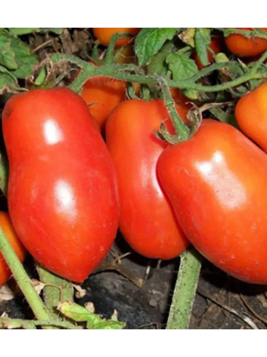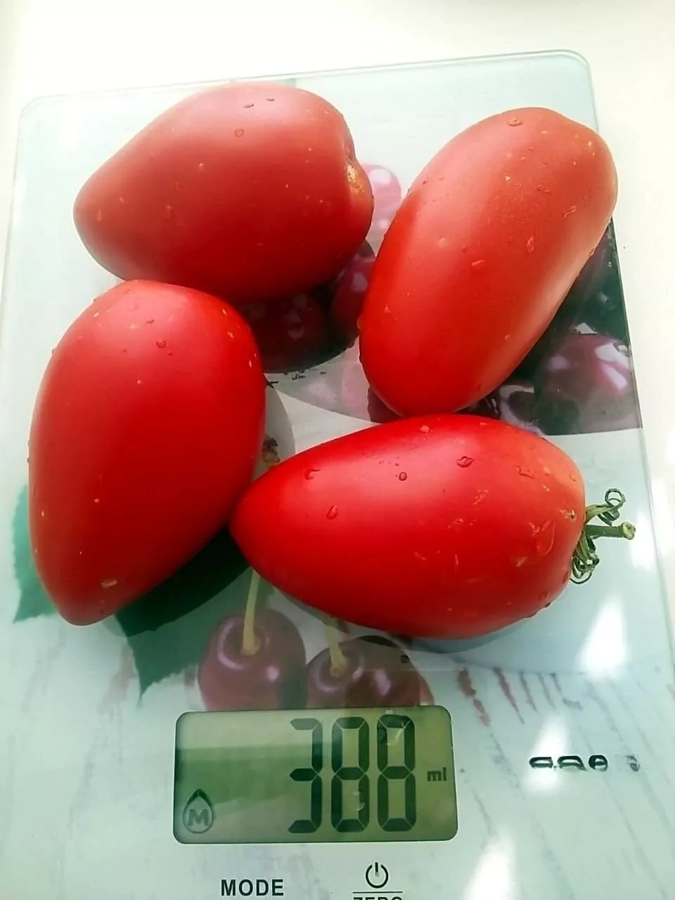 Среднеранний срок созревания позволяет рассчитывать на урожай в середине сезона. Обратнояйцевидная форма плода — это вытянутый «сливовидный» томат с более широкой вершинкой, что характерно для многих сортов салатного назначения.