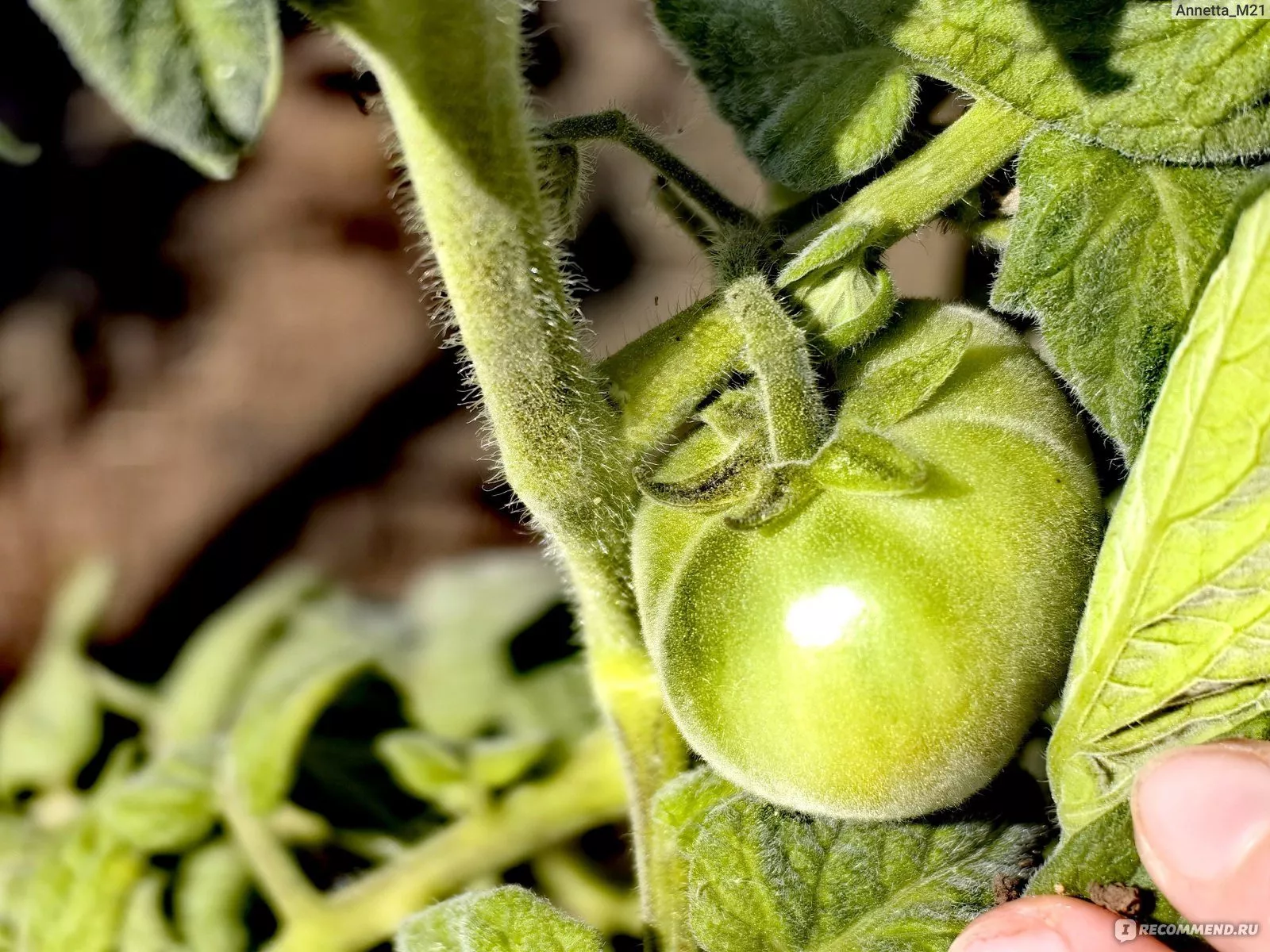 В стадии технической спелости помидоры имеют зеленую окраску с темным пятном у основания. По мере созревания они равномерно наливаются насыщенным ярко-красным цветом. Эффектный контраст этих глянцевых плодов на фоне сизой листвы делает растение очень декоративным.
