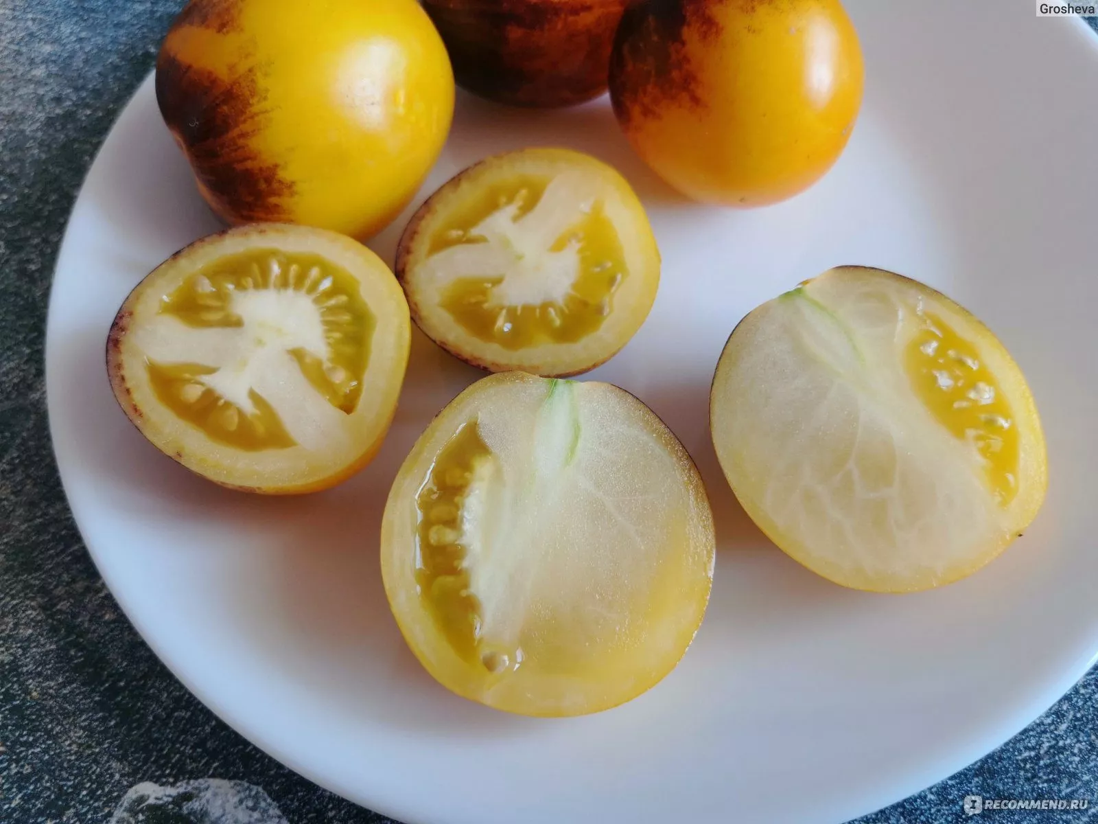 Плоды отличаются хорошей выравненностью и гладкой поверхностью. Плотность мякоти средняя, что является типичным для многих салатных сортов и обеспечивает приятную текстуру при нарезке.