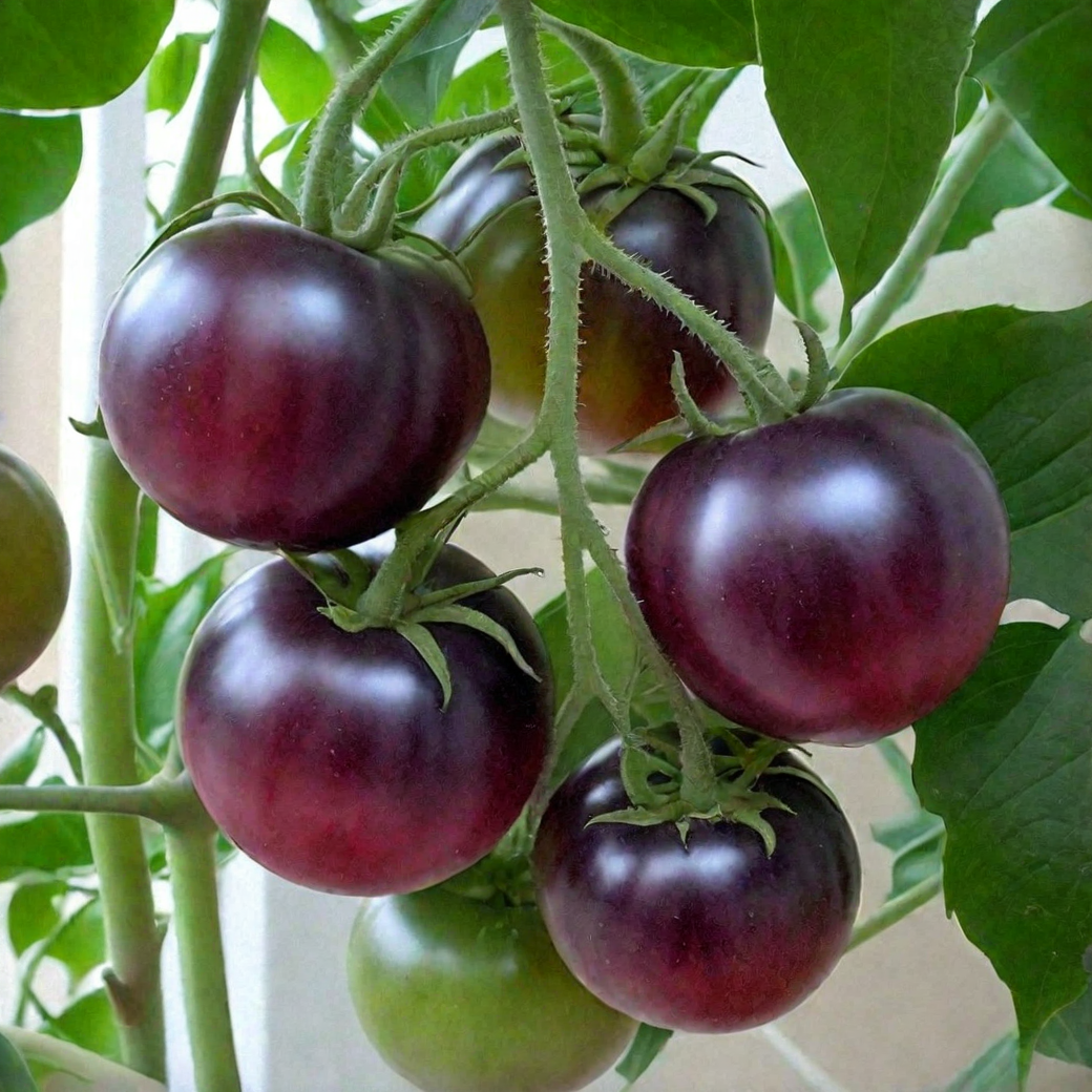 Томат Голубая лагуна — это яркий представитель так называемых антоциановых сортов. Их главная отличительная черта — насыщенная фиолетовая окраска кожицы, которая обусловлена высоким содержанием растительных пигментов антоцианов. Эти пигменты не только придают необычный цвет, но и обладают антиоксидантными свойствами, что добавляет плодам пищевой ценности.