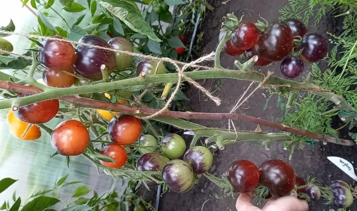 Созревание в кисти часто происходит дружно. Собирать томаты рекомендуется в стадии полной биологической спелости, когда они приобретают насыщенный фиолетовый цвет и характерный для сорта вкус. Именно в этот момент в плодах накапливается максимальное количество сахаров, антоцианов и других полезных веществ.