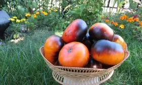 | Высокая урожайность для сорта с такой оригинальной окраской. | Требует обязательного пасынкования и подвязки, несмотря на детерминантный тип роста. |