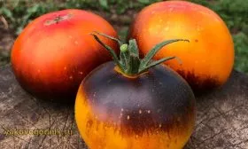 Таким образом, сорт удачно сочетает в себе декоративную экзотичность, выраженную в необычном окрасе с фиолетовыми плечиками, и практическую ценность надежного, урожайного томата с выдающимися вкусовыми качествами для самого разнообразного использования.