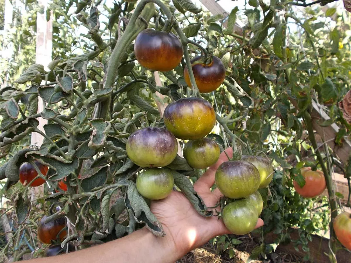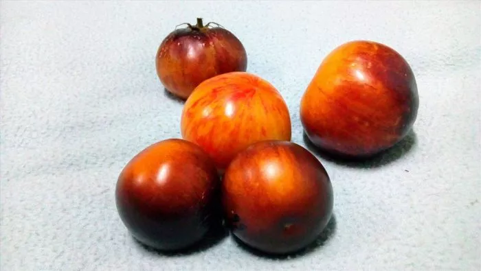 Таким образом, сорт удачно сочетает в себе декоративную экзотичность, выраженную в необычном окрасе с фиолетовыми плечиками, и практическую ценность надежного, урожайного томата с выдающимися вкусовыми качествами для самого разнообразного использования.