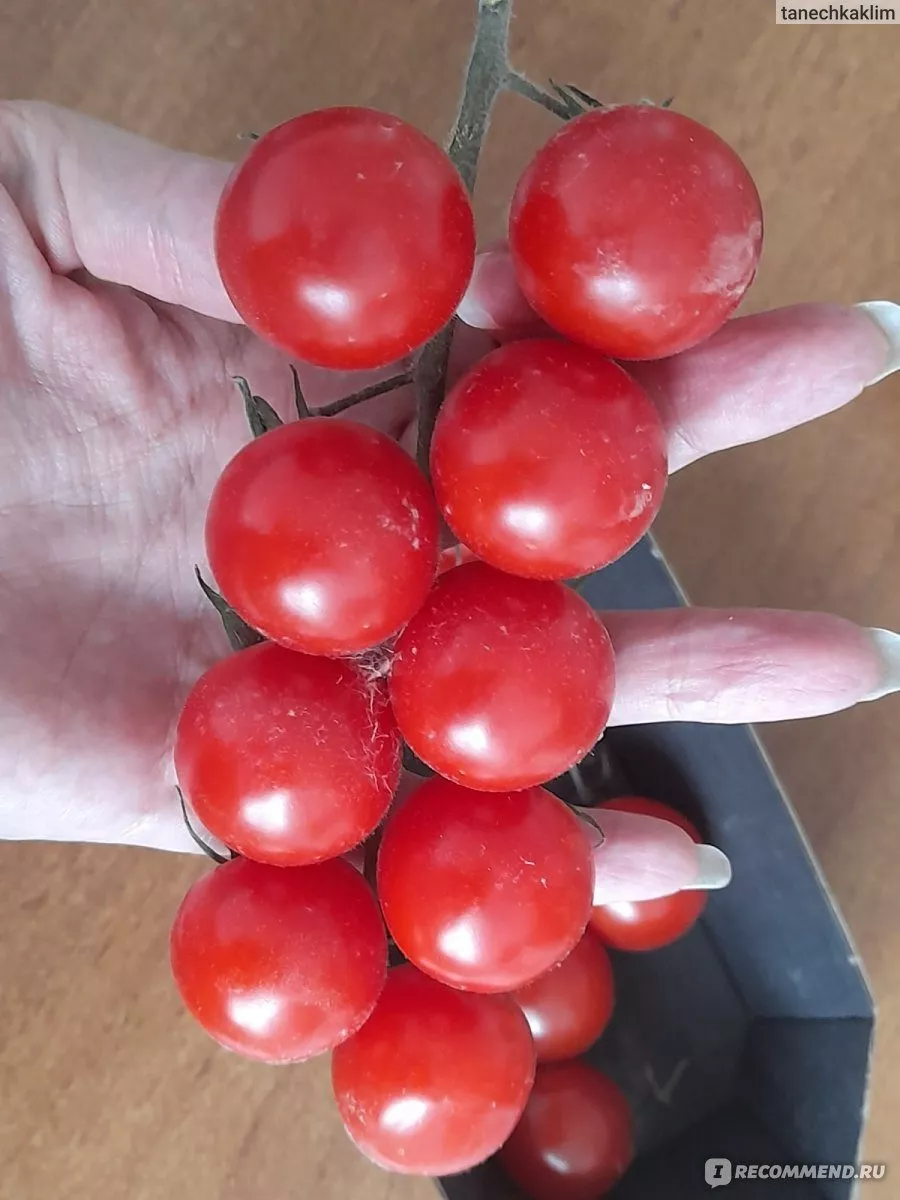 | Масса плода | 200-300 г (до 600 г) | Тонкие плодоножки и кисти нуждаются в подвязке. Несколько плодов дают килограмм урожая. |