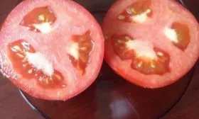 В состоянии технической спелости помидоры имеют светло-зеленый цвет без темного пятна у плодоножки. При полном созревании они равномерно окрашиваются в насыщенный красный цвет. Кожица гладкая, глянцевая, достаточно плотная, чтобы предохранять плоды от растрескивания, но не жесткая.