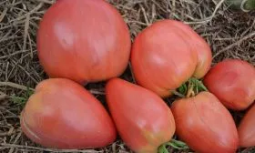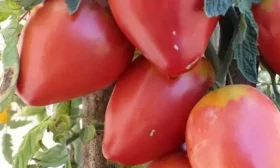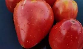 Именно плоды — визитная карточка этого сорта. Их вытянутая сердцевидная форма с выраженным острым «носиком» является одним из ключевых сортовых признаков, что отличает эти томаты от многих других сердцевидных сортов, имеющих более округлое основание.