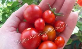 Плоды формируются в простых и компактных кистях, по 5-7 штук в каждой. Благодаря небольшому размеру самого куста и такому обильному кистевому плодоношению, растение в период созревания выглядит очень декоративно. Созревание в кисти дружное, что удобно для сбора урожая.