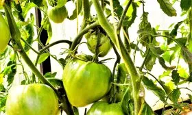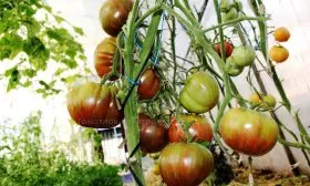 Подвязку к вертикальной шпалере начинают через неделю после высадки и продолжают по мере роста, регулярно подкручивая верхушку вокруг бечевки. Верхушку прищипывают (вершкуют) за 30-35 дней до планируемого окончания сезона, оставляя над последней цветочной кистью 2-3 листа для ее питания.