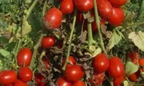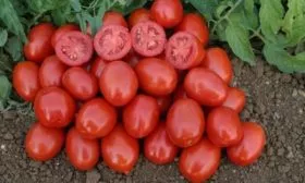 Именно эти требования и сформировали знакомый нам облик сорта: плотные сливовидные плоды без зеленого пятна у плодоножки, насыщенный красный цвет и детерминантный тип роста, облегчающий уход и сбор урожая в больших масштабах.