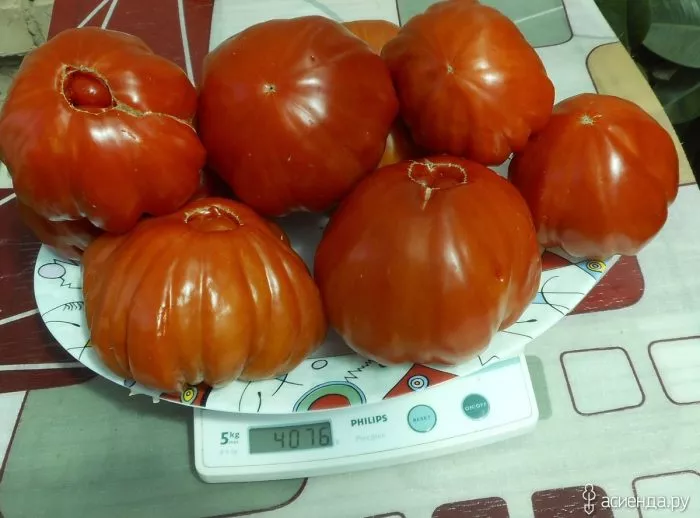 Плоды у этого томата формируются кистями. Важная специфическая черта: самые крупные помидоры, часто достигающие верхней границы заявленной массы, завязываются на нижних кистях. По мере движения вверх по стеблю плоды в кистях могут становиться несколько мельче, что является нормальным явлением для таких крупноплодных форм.