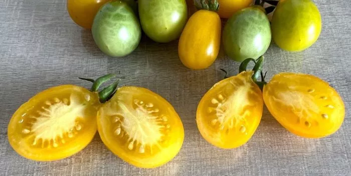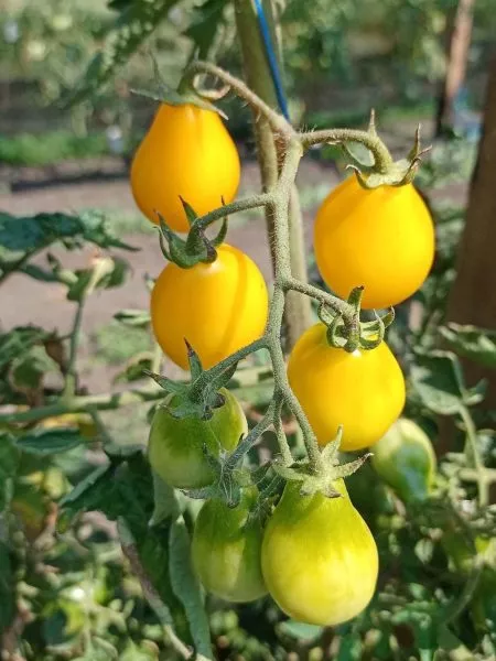 В фазе технической спелости помидоры имеют равномерный светло-зеленый цвет. По мере созревания они приобретают яркий, солнечный желто-зеленый оттенок. Полностью зрелые плоды часто демонстрируют насыщенный лимонно-желтый цвет, иногда с легким янтарным или золотистым румянцем у плодоножки. Такая палитра делает кисти необычайно нарядными.