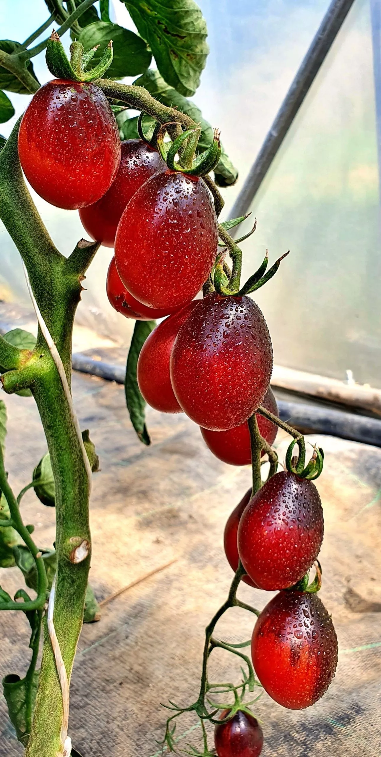 Определить оптимальный момент для сбора урожая помогает характерная окраска плодов. Полной спелости они достигают, когда основной цвет становится насыщенно-рубиновым, а область у плодоножки (плечики) проявляет интенсивный антоциановый, темно-фиолетовый оттенок. Снимать томаты рекомендуется с плодоножкой, аккуратно прокручивая кисть, чтобы не повредить соседние завязи на сложном соцветии.