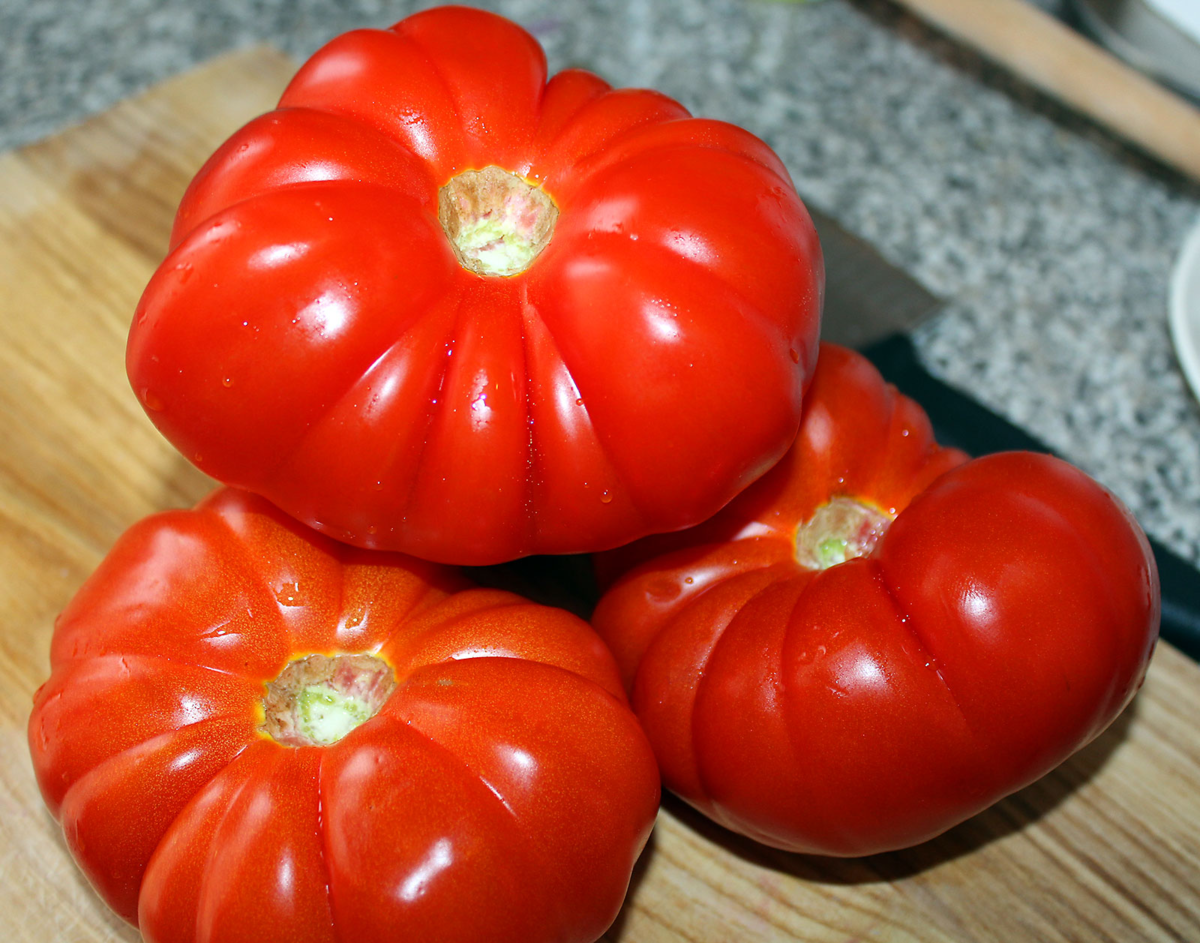 Полив должен быть регулярным и равномерным. Пересыхание почвы с последующим обильным поливом почти гарантированно приведет к растрескиванию крупных плодов. Поливают под корень теплой отстоянной водой, стараясь не попадать на листву, особенно в теплице.