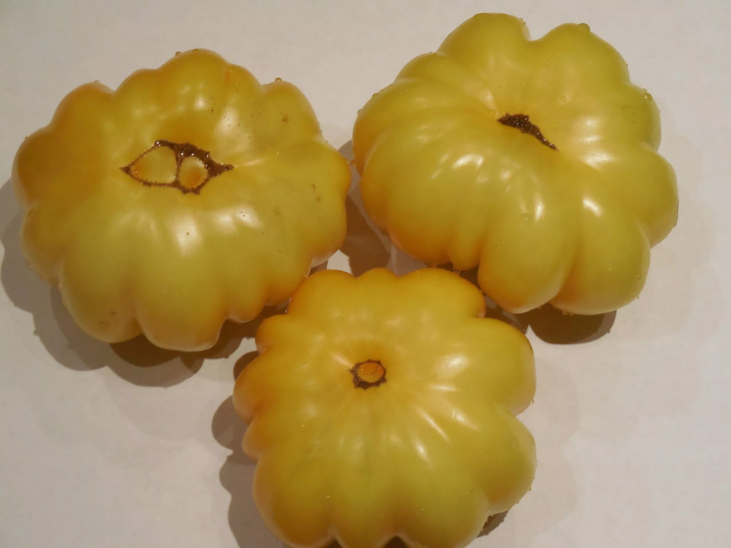 Такая ребристость — результат сильной складчатости внутренних перегородок (септ) и многокамерности. Плод разделен на множество сегментов, что визуально напоминает экзотический фрукт или распустившийся цветок. По мере созревания они приобретают насыщенный солнечно-желтый цвет без зеленого пятна у плодоножки.