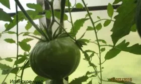 Стебель у растения крепкий, но его прочности недостаточно, чтобы удержать массу крупных плодов. Уже на ранних этапах развития необходима надежная вертикальная подвязка к шпалере или мощным опорам. Куст характеризуется хорошей облиственностью — листья крупные, классической «помидорной» формы, насыщенного зеленого цвета.