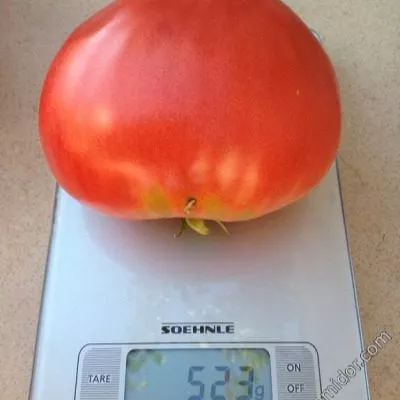 Средний вес плода соответствует заявленным 300-400 граммам, однако потенциал сорта позволяет получать и более впечатляющие результаты. Нижние кисти, формирующиеся первыми и получающие максимум питания, часто дают томаты-гиганты массой 500-600 граммов и более. На верхних ярусах плоды, как правило, мельче, но сохраняют типичную для сорта форму и качество мякоти.