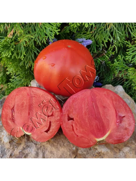Мякоть очень плотная, мясистая и многокамерная. При разрезе она сахаристая, с минимальным количеством семян и сока. Такая структура, с высоким содержанием сухих веществ, напрямую определяет универсальное кулинарное назначение томата.