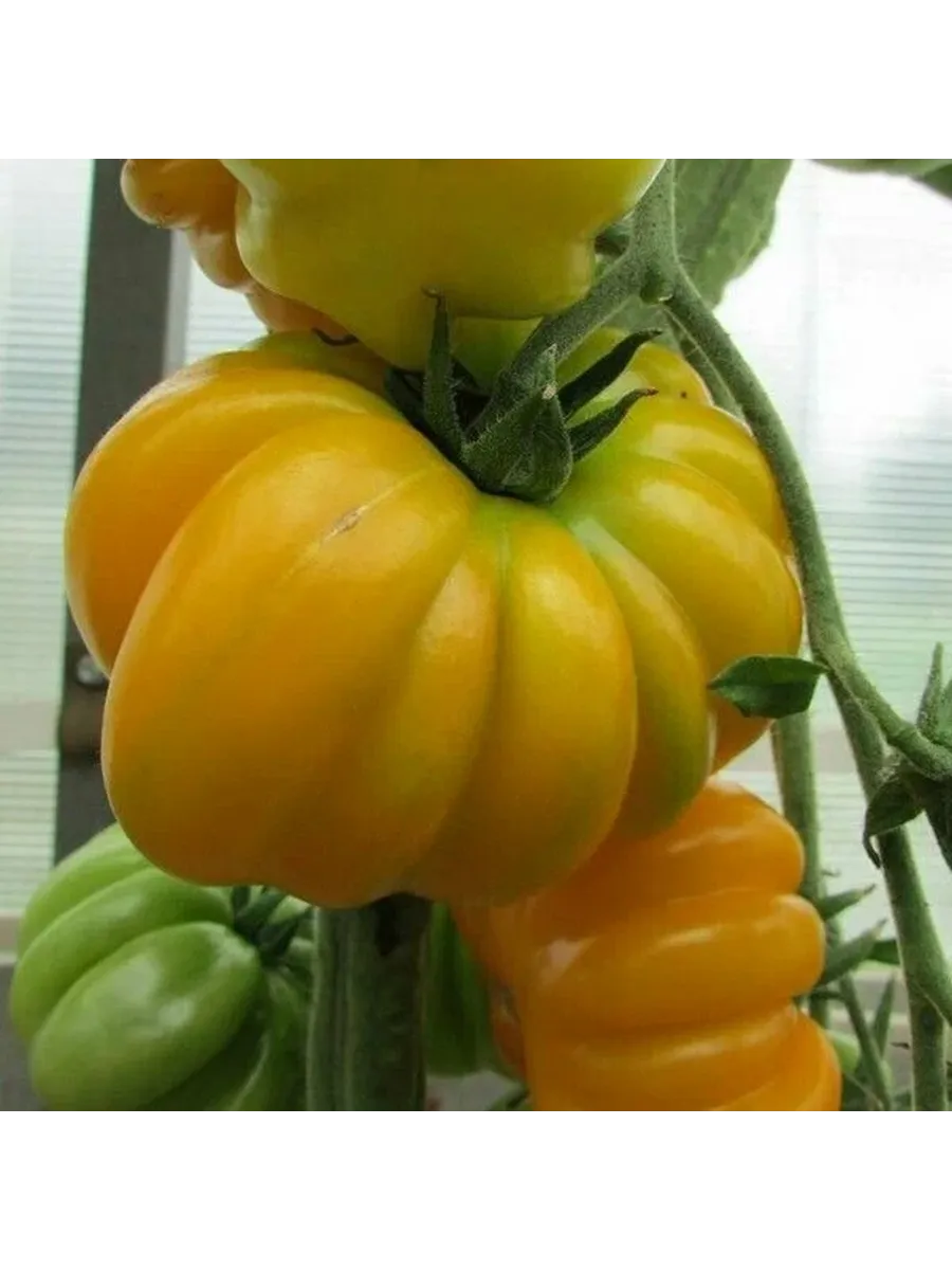 Именно сочетание мощного высокорослого куста и экзотических, массивных желтых плодов с глубокими ребрами создает тот неповторимый облик, за который сорт ценится коллекционерами и любителями нестандартных томатов.