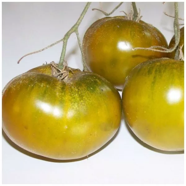 Визитная карточка этого томата — его экзотическая окраска. В состоянии полной биологической спелости плоды приобретают изумрудно-зеленый цвет с выраженным желтоватым или лимонным оттенком, часто проявляющимся в виде румянца у плодоножки. Эта особенность делает сорт высокодекоративным и узнаваемым.