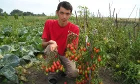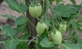 - Обязательно подвяжите основной стебель к опоре. Несмотря на низкий рост, под тяжестью плодов массой 40-60 г куст может заваливаться на землю. Подвязка также улучшает проветривание и доступ света.