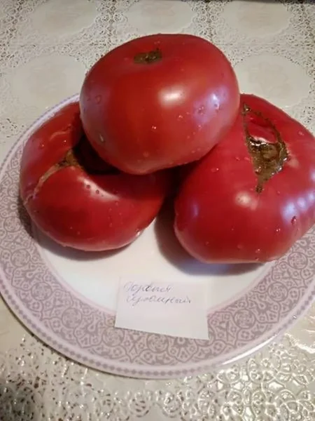 Главная внешняя отличительная черта плодов — сердцевидная форма. Их масса, согласно данным Госреестра, составляет 40-60 граммов, что относит их к категории мелкоплодных. Зрелые томаты имеют розовую окраску.