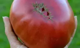 Именно сочетание нестандартной формы, фактурной ребристости, глубокого антоцианового окраса и крупного размера делает внешний вид этих плодов запоминающимся и легко узнаваемым среди других сортов томатов.