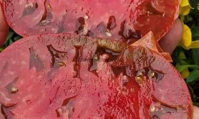 Семенные камеры немногочисленны и относительно небольшие для плодов такой массы, что является показателем высокого выхода мякоти. Это подтверждается и весом томатов, который в среднем составляет 300-500 граммов, а отдельные экземпляры могут достигать 600 граммов.