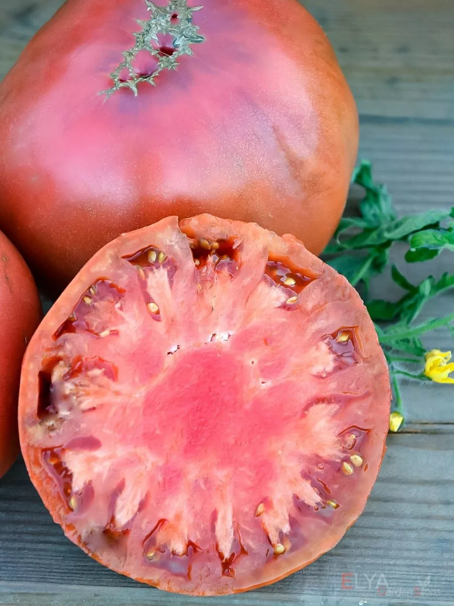 Уникальный цвет зрелого плода обусловлен высоким содержанием антоцианов — природных пигментов-антиоксидантов, которые также содержатся в баклажанах и чернике. Это добавляет томату не только эстетической, но и пищевой ценности.