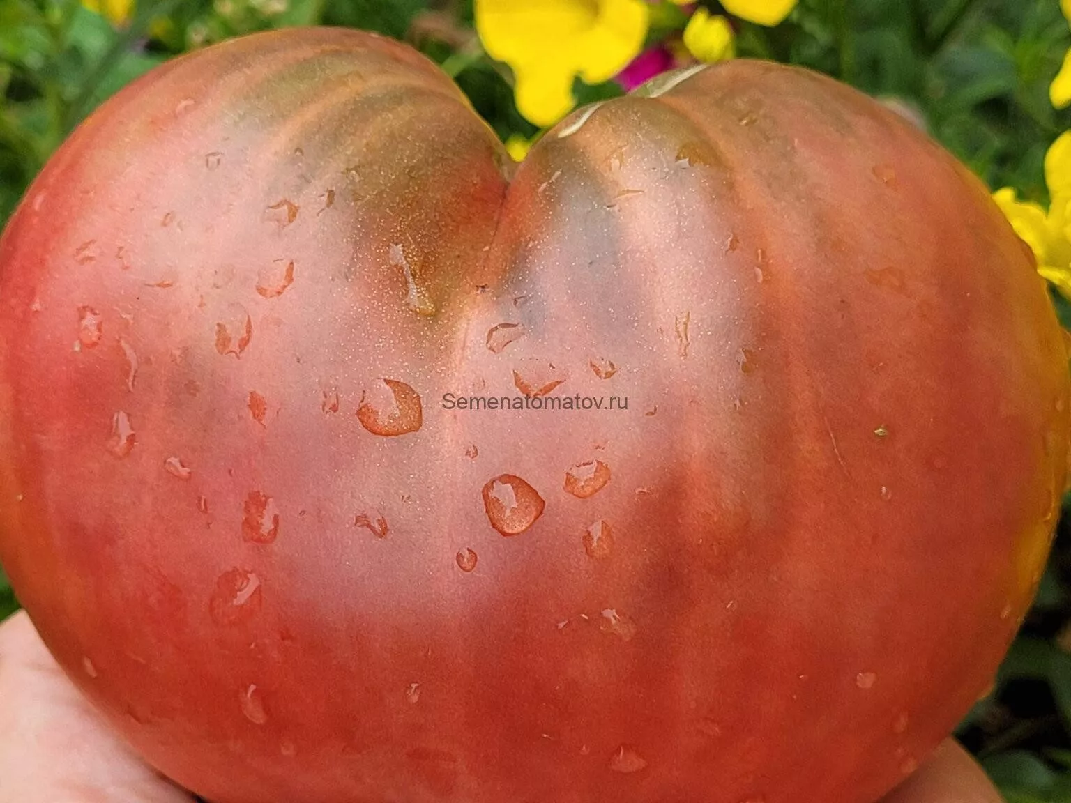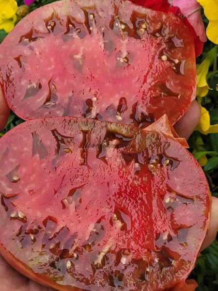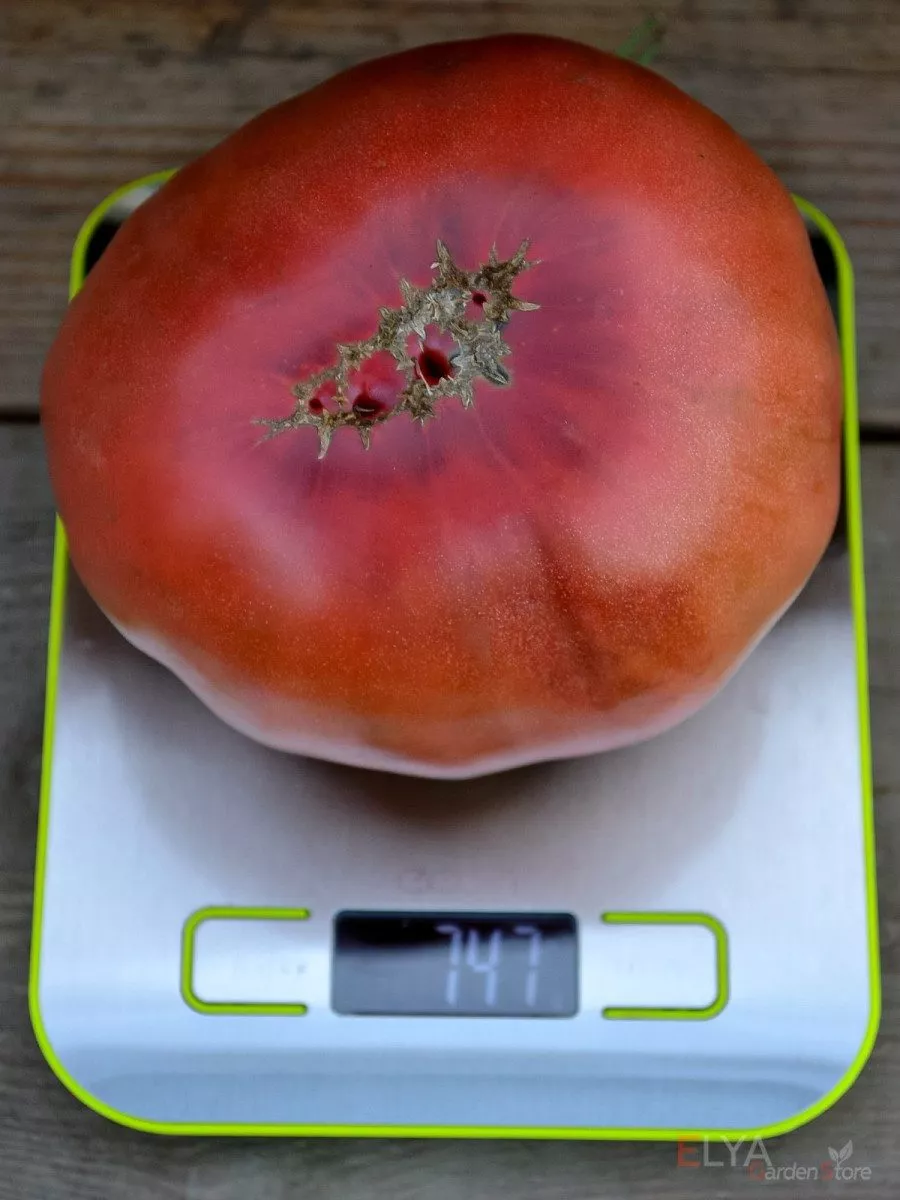 Семенные камеры немногочисленны и относительно небольшие для плодов такой массы, что является показателем высокого выхода мякоти. Это подтверждается и весом томатов, который в среднем составляет 300-500 граммов, а отдельные экземпляры могут достигать 600 граммов.