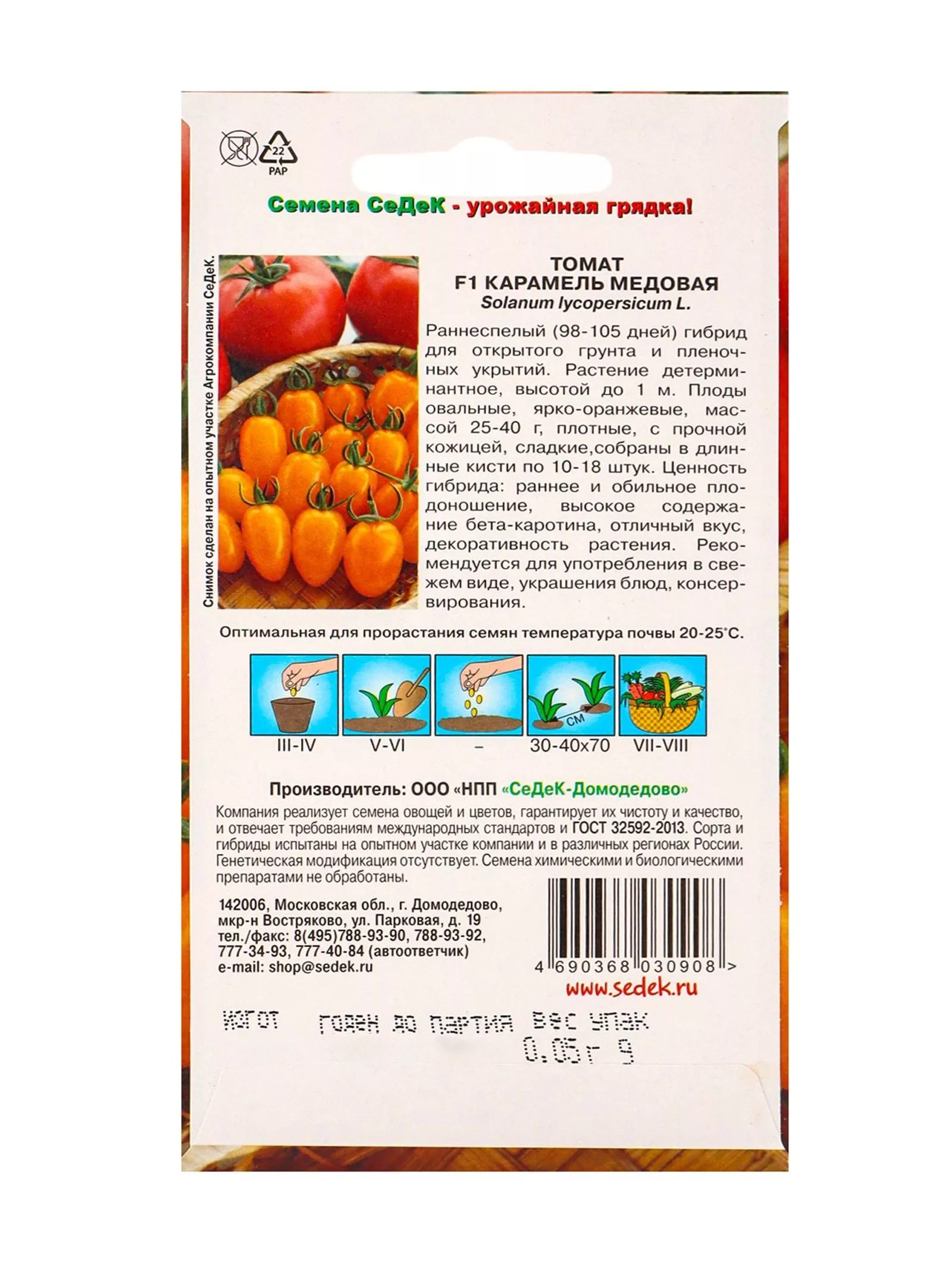 | Карамель медовая F1 | Оранжевый | Цилиндрическая, слаборебристая | 25-40 | Десертный сладкий вкус с фруктовыми нотками |